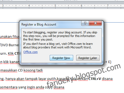 Denikian posting kali ini tentang "Cara Posting Blog Dengan Office 2010" semoga posting ini bermanfaat bagi kita semua.! Tinggalkan komentar anda mengenai hal ini dan untuk kunjungan balik saya ke blog anda.